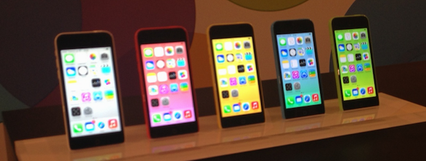 Dall’evento post Keynote Antonio Dini ci invia queste foto di iPhone 5C r(ealizzate a loro volta con iPhone) con i nuovi modelli presentati da Apple. Si tratta di una estetica ampiamente anticipata da rumors e prototipi e dai colori che dal vivo risultano molto più accesi grazie anche all’installazione di iOS 7 che con le sue icone ad alto contrasto e allo sfondo della springboard “personalizzato”.