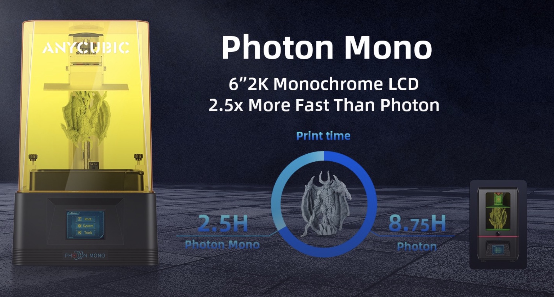 Anycubic Photon Mono è una stampante a resina 3D a prezzi accessibili e veloce. E’ una stampante a resina per chi vuole entrare in questo mondo con alta efficienza e buona qualità. Se volete affacciarvi al mondo della stampa 3D con resina questo è il modello che fa per voi.