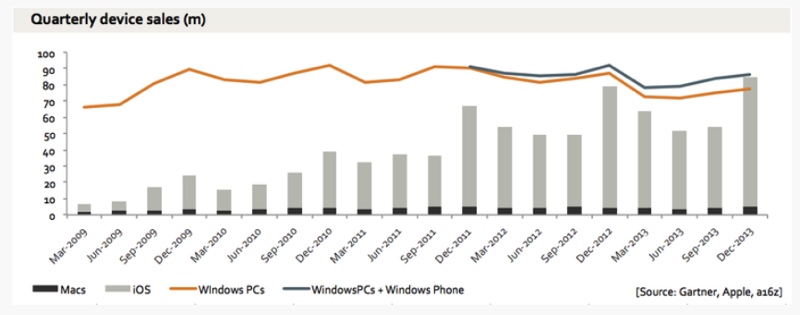 Per la prima volta nella storia dell’industria ICT le vendite di Mac e dispositivi iOS hanno superato le vendite di computer di tutti i costruttori PC Windows nel mondo. Si tratta di un sorpasso simbolico che evidenzia però i profondi mutamenti avvenuti nel settore negli ultimi anni, rilevato dall’analista Benedict Evans.