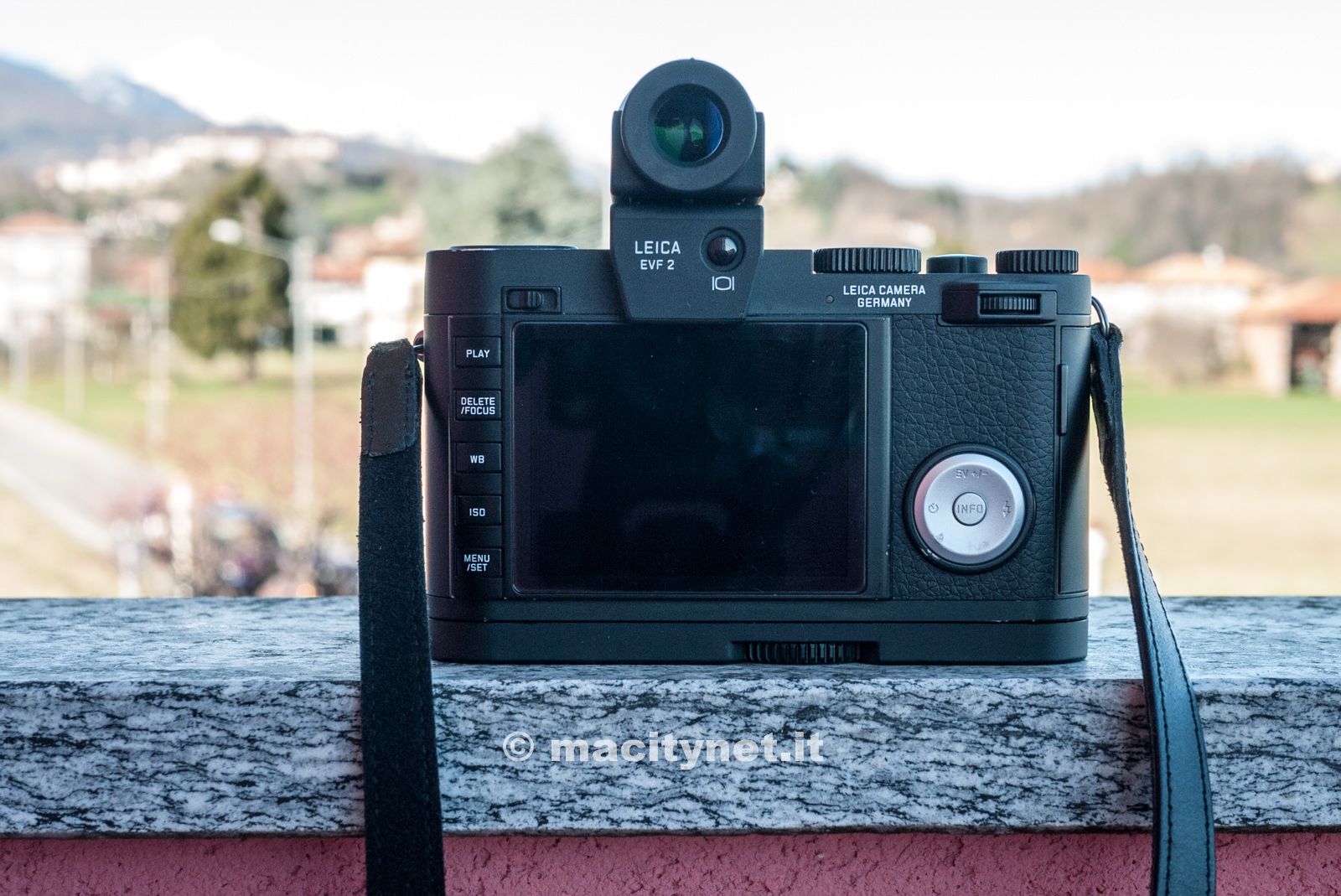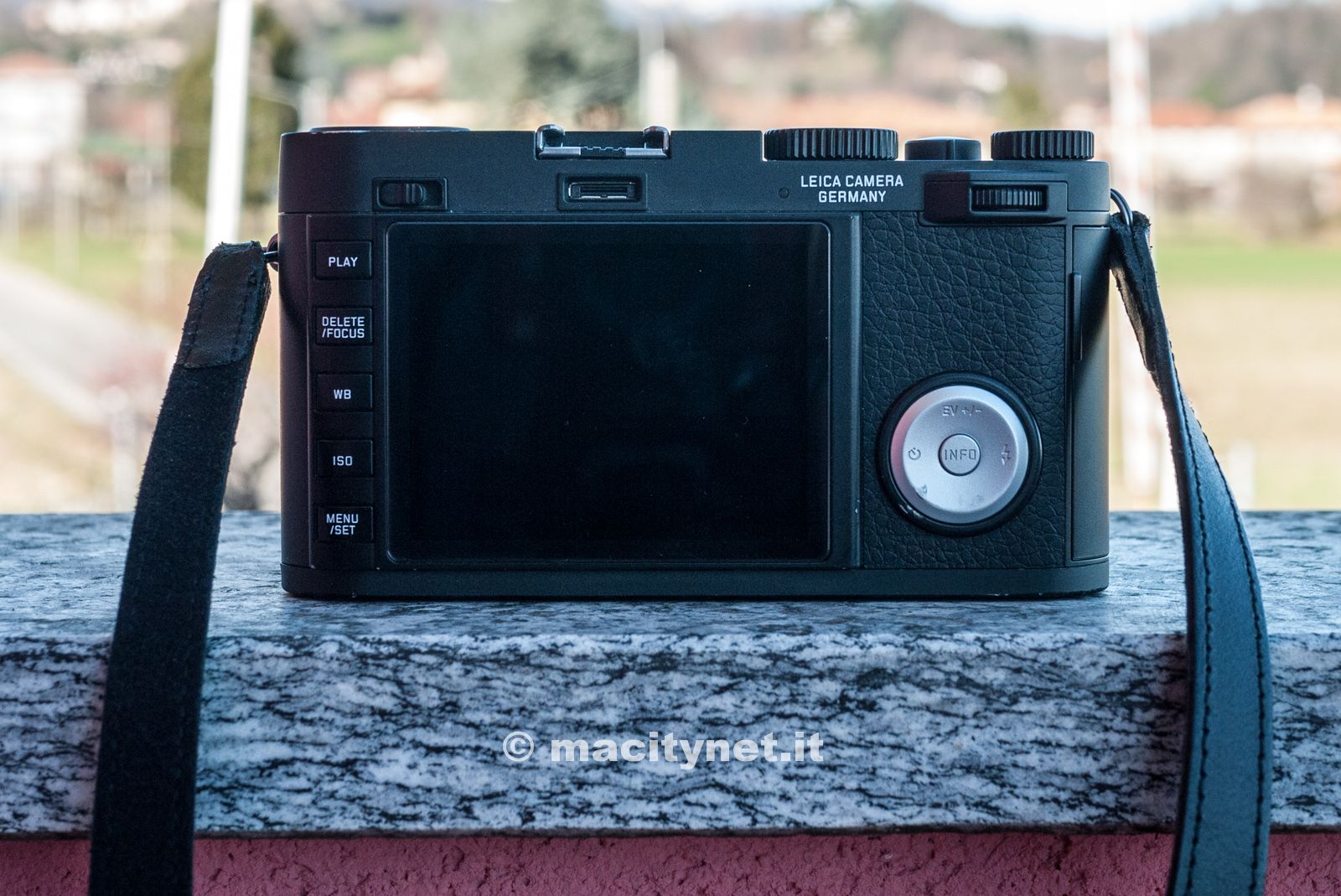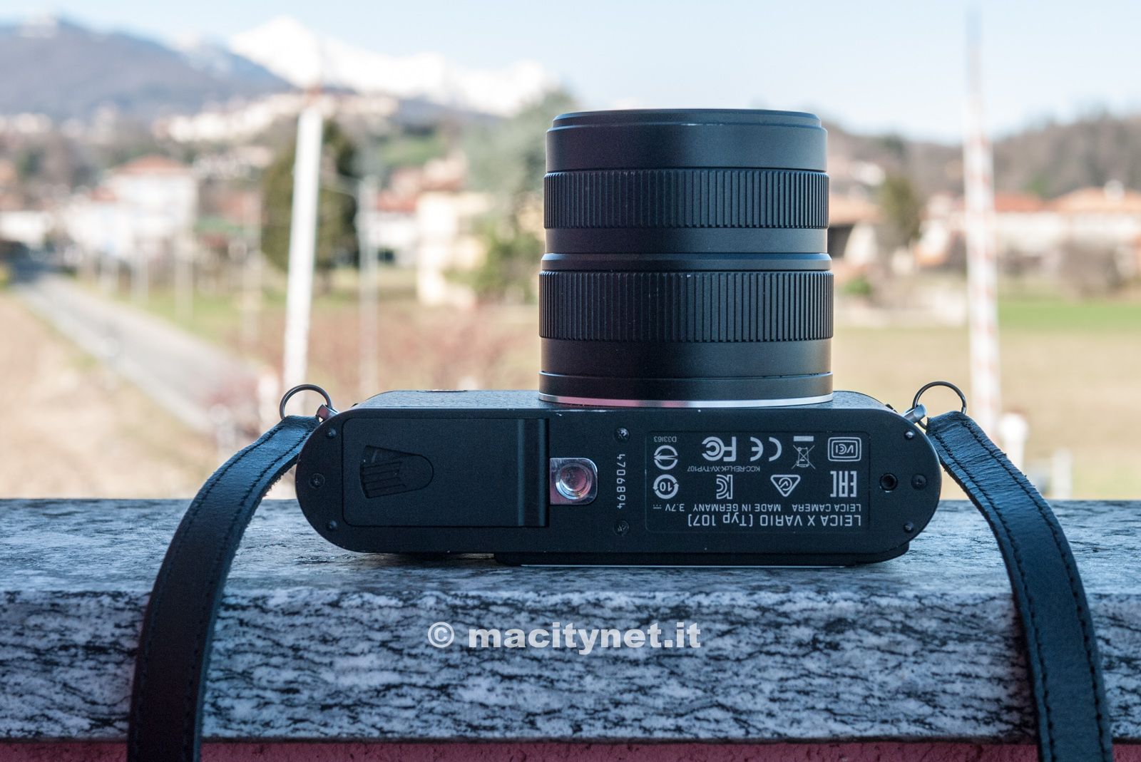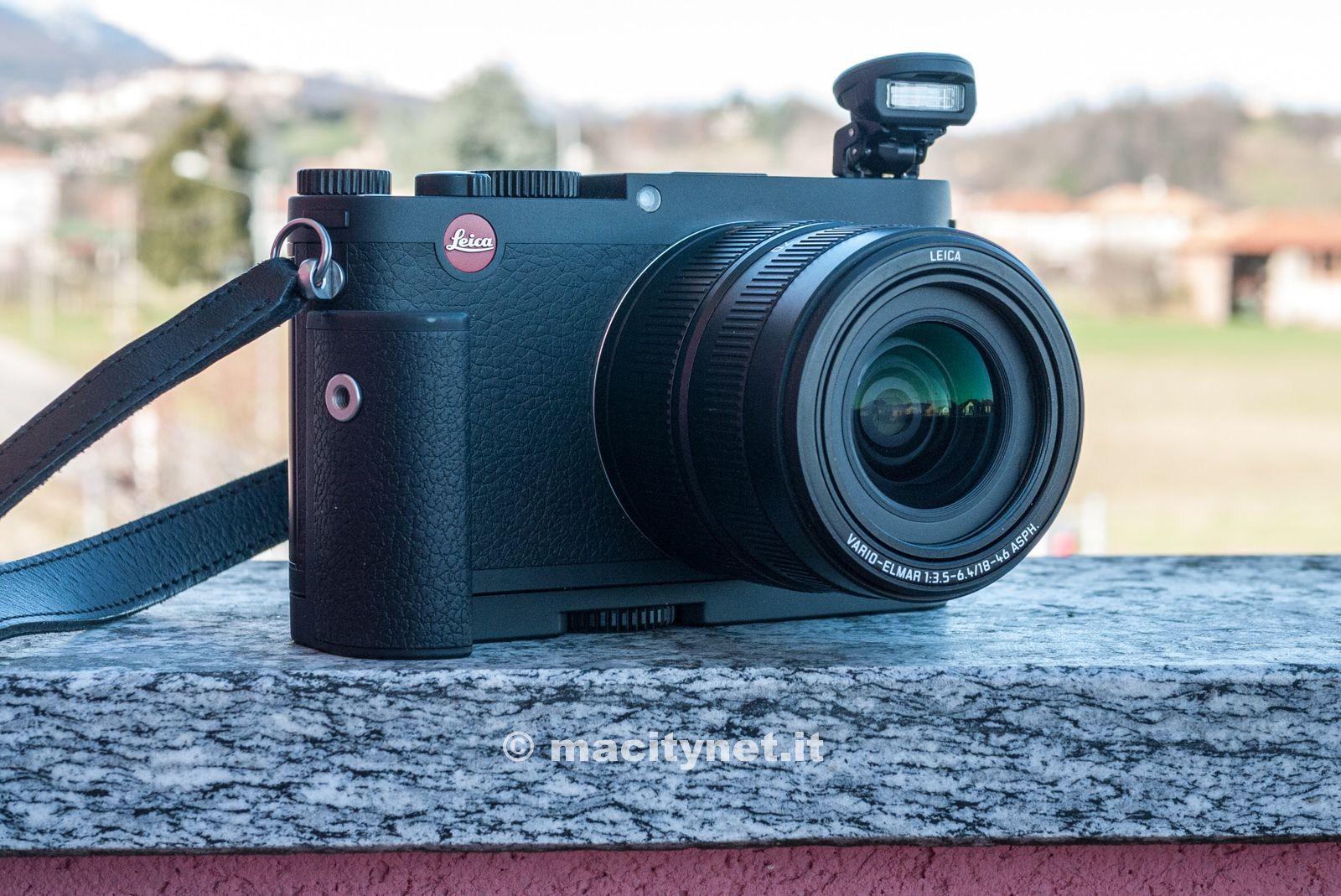 L’impressione che si ricava al primo impatto è che si tratta di una Leica al 100%: la copertura superiore è ottenuta fresando alluminio massiccio, con lo stesso procedimento usato per la Leica M. Soppesato, il corpo macchina in magnesio e alluminio dà una piacevole sensazione di robustezza e solidità, grazie anche alla perfetta distribuzione dei pesi che rende la fotocamera ottimamente bilanciata. Buona la presa e l’impugnatura, grazie al rivestimento in pelle, che permette una presa sicura ed un tocco di stile, senza menzionare la sporgenza sul retro che permette di appoggiare il pollice della mano destra e mantenere il controllo senza timori e con comodità.