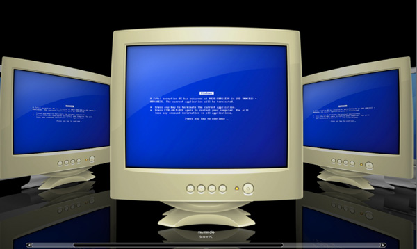 Ma cosa succede con i PC collegati in rete? Apple non si è certo affannata a trovare icone e modelli corrispondenti alla grande varietà  di configurazioni, involucri e aspetti esteriori del mondo PC-Windows ma ben più sbrigativamente e spiritosamente ha scelto una icona molto rappresentativa dell'”altro mondo” un bel monitor “beige” (ricordate la campagna di lancio dell’iMac colorato di fine anni 90?) con all’interno lo “schermo blu della morte” che per molti utenti Mac (e Windows) rappresenta al meglio, o al peggio se volete, l’altra faccia dell’informatica.