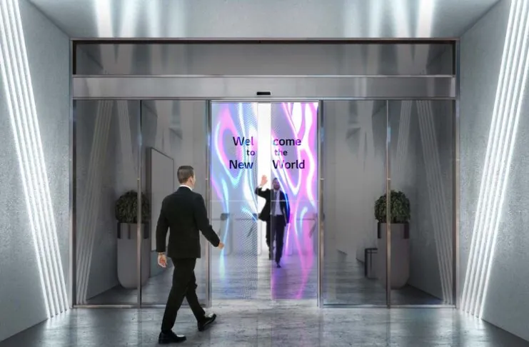 LG ha stretto una partnership con il produttore svedese Assa Abloy Entrance Systems per la creazione di porte scorrevoli automatiche con integrato un display OLED trasparente. Le porte scorrevoli in questione sono destinate alle attività commerciali e LG spiega che sono utili per accogliere i clienti, comunicare con i dipendenti, mostrare pubblicità.