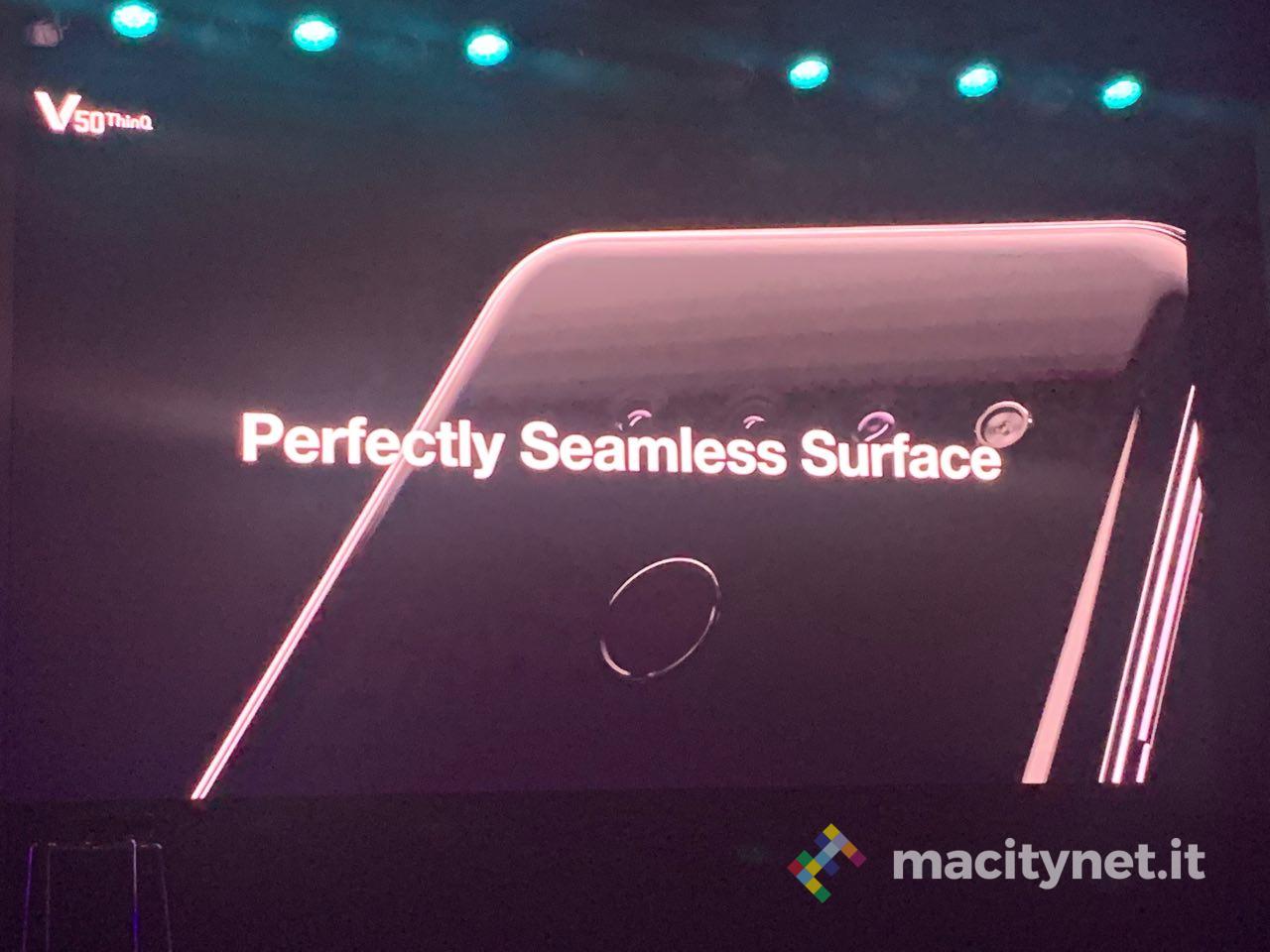 LG V50ThinQ 5G è spesso 8,3 millimetri e pesa 183 grammi. Per sottolineare l’eleganza del design, i tre obiettivi posteriori sono integrati nel corpo dello smartphone senza soluzione di continuità. Tutto questo senza sacrificarne la resistenza, che continua a soddisfare 14 standard militari statunitensi (specifiche MIL-STD 810G).