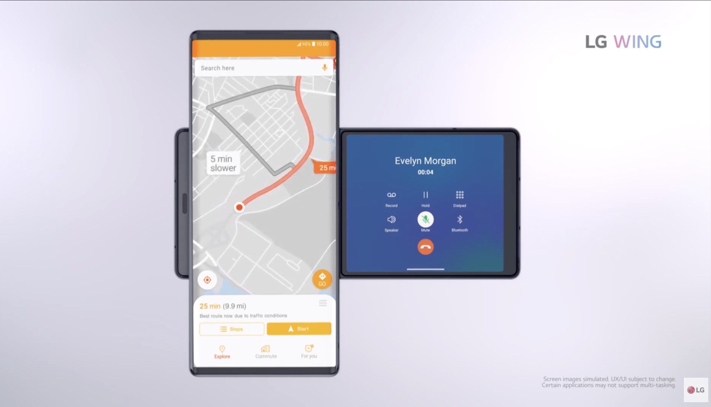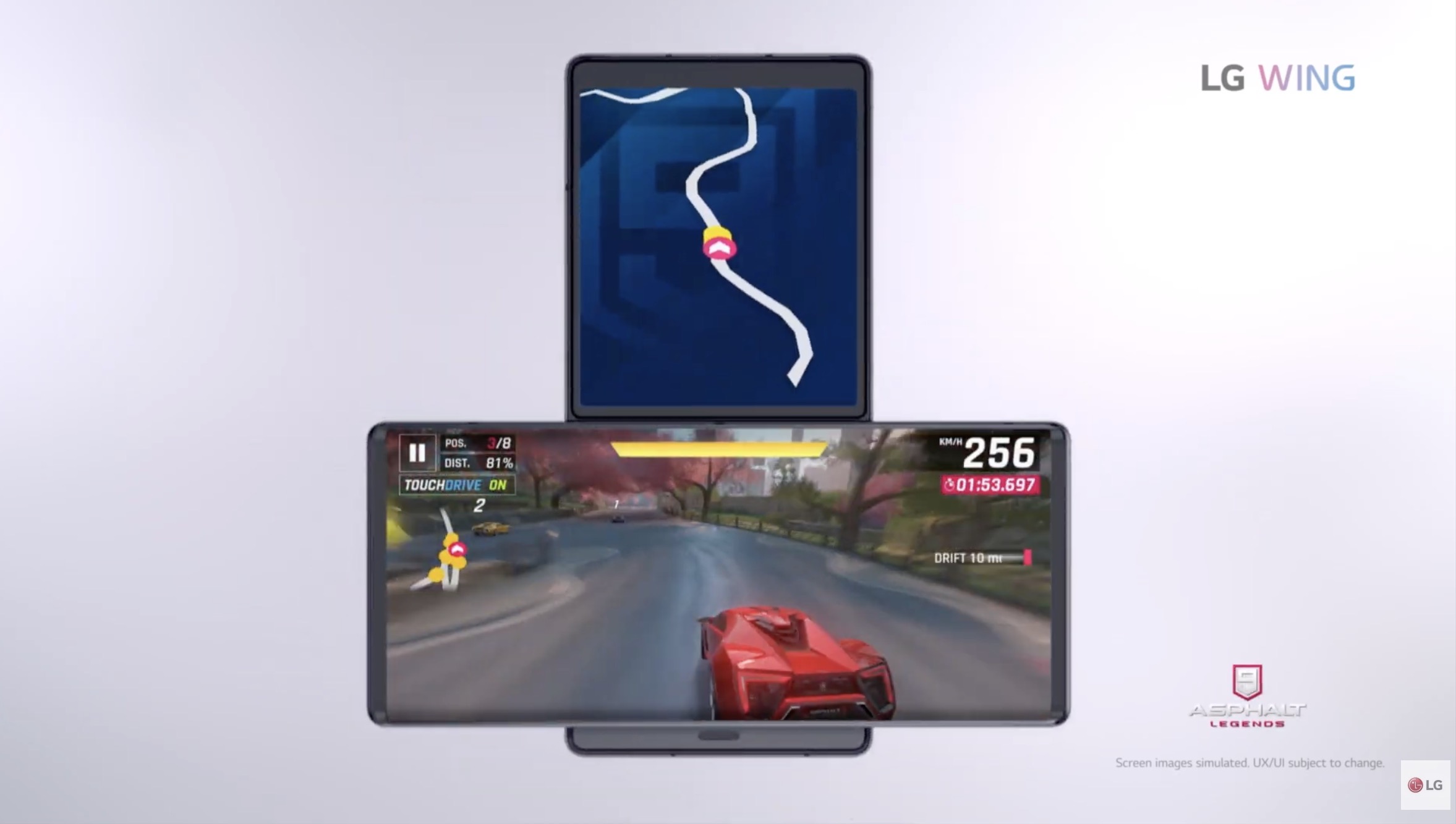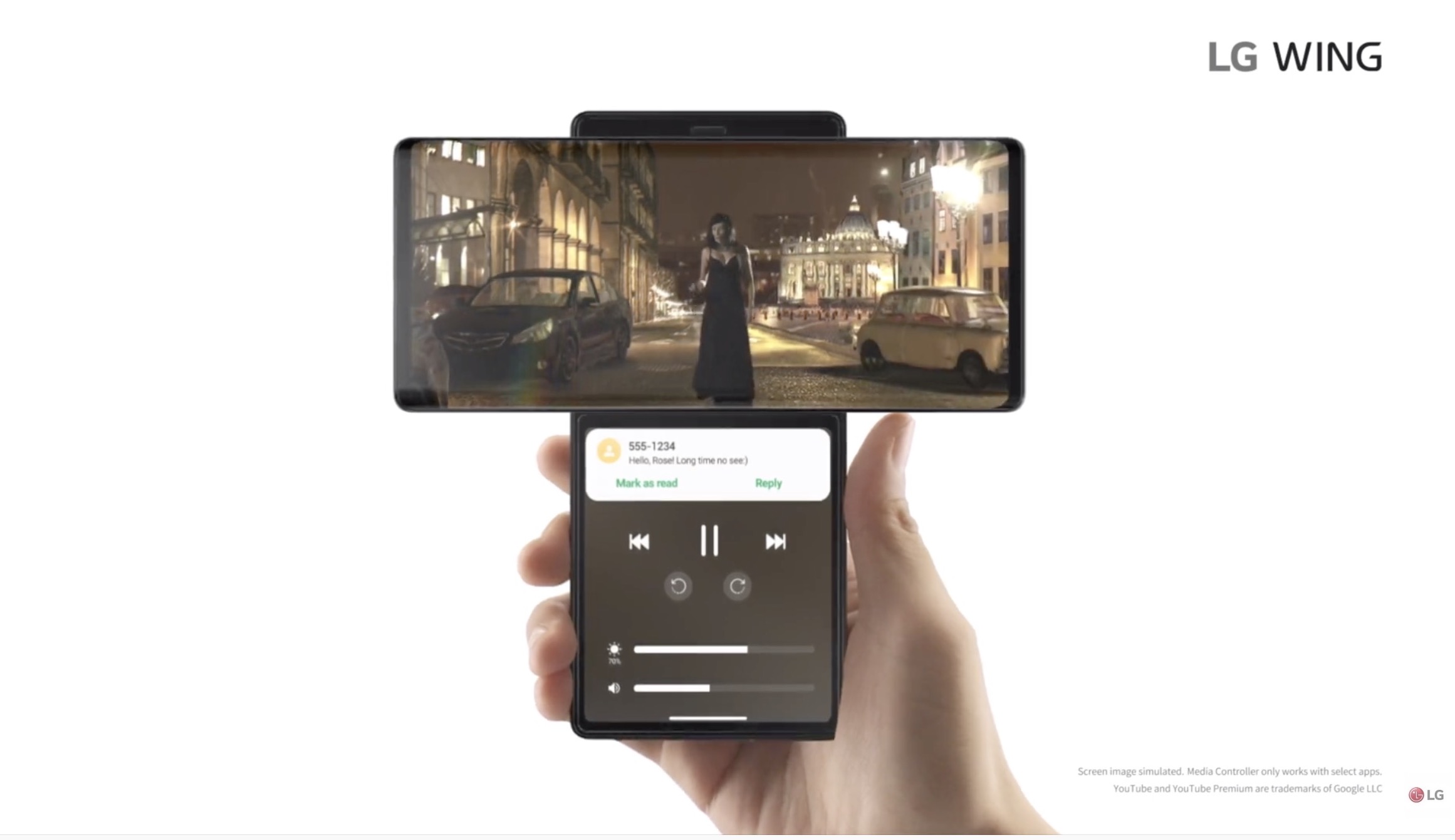 “LG WING ha un design al tempo stesso familiare e dirompente rispetto agli smartphone convenzionali presenti sul mercato. Di primo acchito sembra uno smartphone convenzionale, con il suo display OLED da 6,8 pollici e la sua tripla fotocamera pronti a soddisfare qualunque esigenza di navigazione, social o fotografica. Ma basta un gesto per scoprire la sua vera anima. Il display ruota infatti di 90° in senso orario, posizionandosi in orizzontale e rivelando un secondo schermo da 3,9 pollici che permette di dare il via a nuove modalità di fruizione di contenuti sullo smartphone.