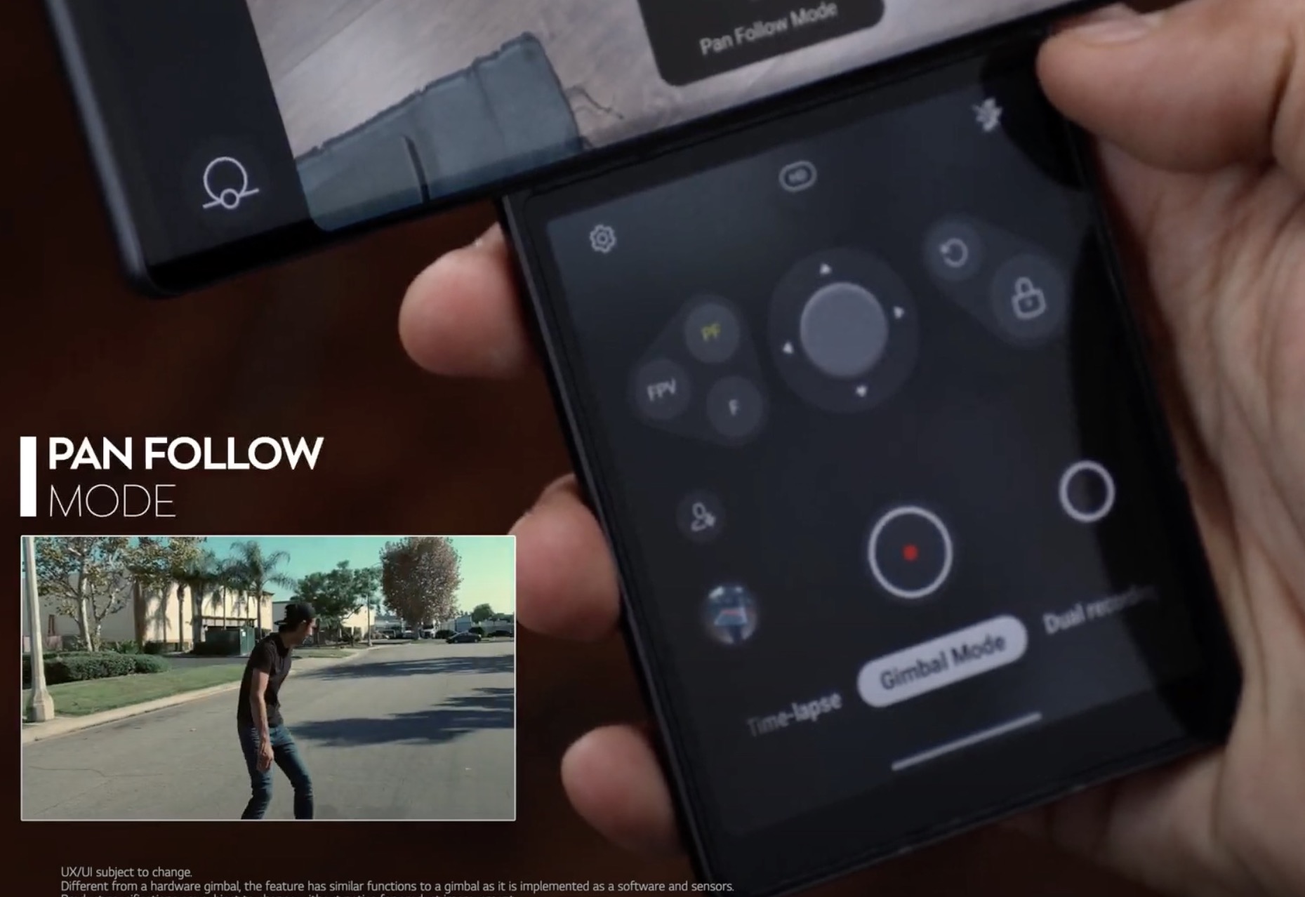 La Gimbal Motion Camera, la prima al mondo integrata in uno smartphone, trasforma il secondo schermo di LG WING in una comoda impugnatura, garantendo la stabilità necessaria per registrare video fluidi in modalità orizzontale con una sola mano, cosa normalmente difficile da fare con altri smartphone. LG WING offre funzionalità che solitamente si trovano solo su uno stabilizzatore reale, come un joystick per controllare l’angolazione dell’inquadratura, un blocco per ridurre vibrazioni e sfocature, una modalità per rendere fluidi i video in movimento (Follow Mode), una per ottimizzare il movimento orizzontale durante le riprese delle panoramiche minimizzando gli scostamenti verticali (Pan Follow Mode), e una modalità per catturare movimenti dinamici e ritmici.