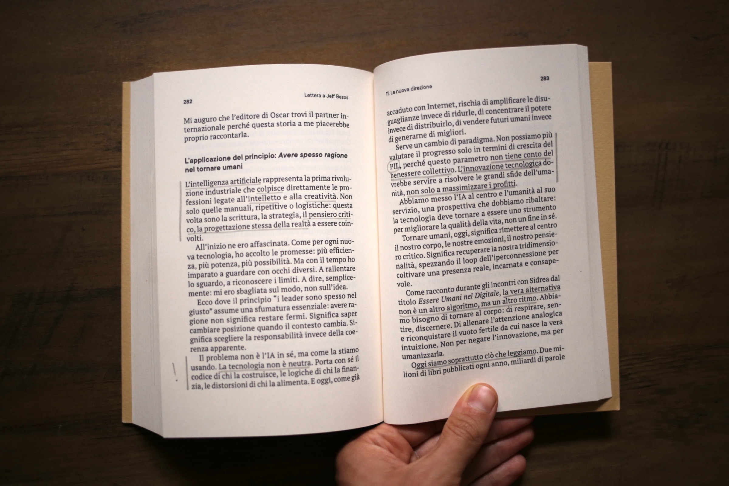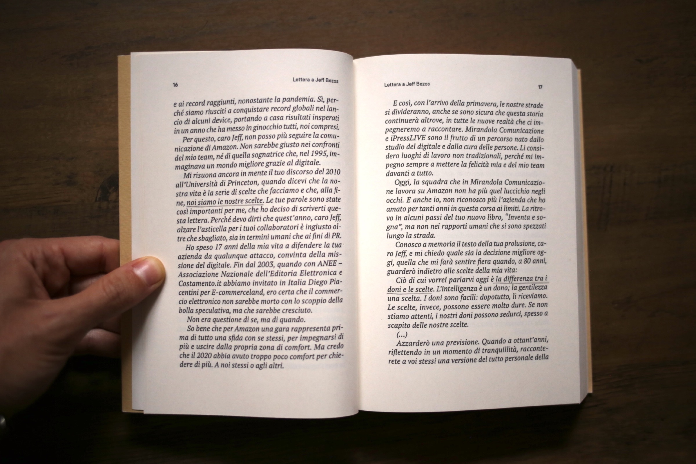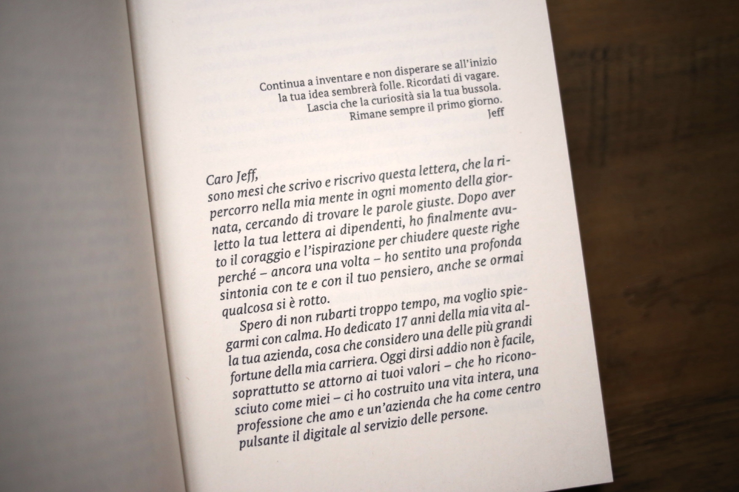 Ma il libro non è un’autocelebrazione né un’invettiva. È un racconto intimo e lucido, che parte da una frattura: il momento in cui l’autrice decide di scrivere davvero a Jeff Bezos per spiegare perché – nonostante il successo, i risultati, i record – non può più continuare a rappresentare quella visione.