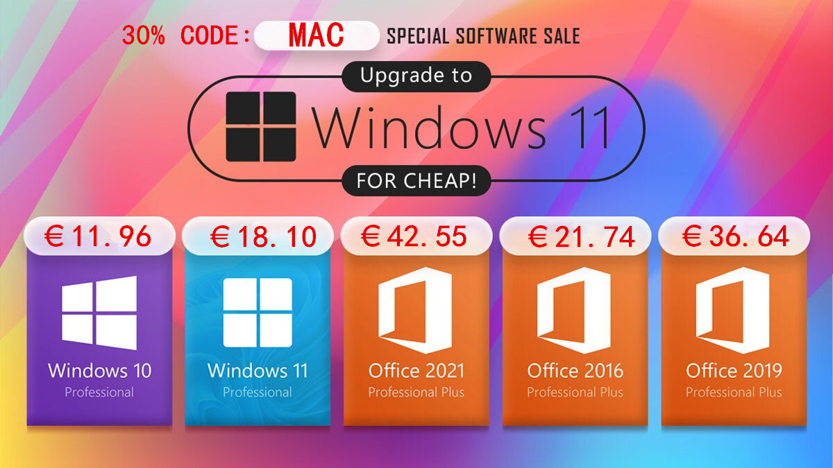 Windows 11 Pro OEM KEY a 18.10 EUR (dopo il 30% di sconto con coupon MAC)