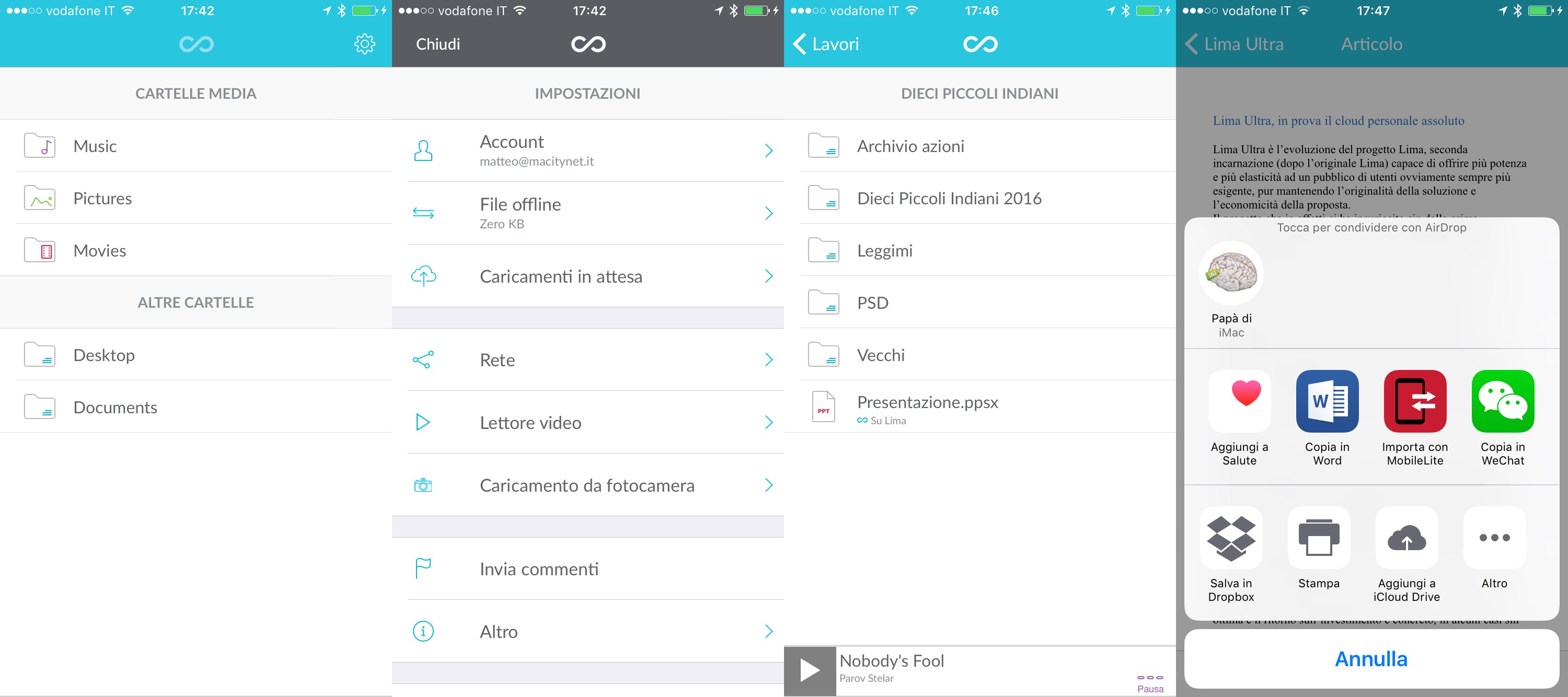 La mancanza di un browser per il prelievo de dati si sente, specie quando abbiamo bisogno di un documento non avendo con noi il nostro Mac (e dovendo per forza usare lo smartphone) e c’è anche da sottolineare che, per quanto la soluzione sia ben pensata, molta della qualità dipende dalla linea ADSL dove è installato il Lima.