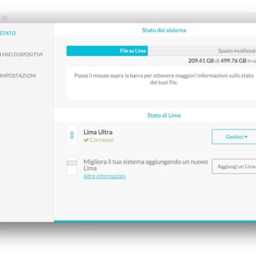 Dall’altra parte resta il pregio di una idea molto buona per chi vuole usare un servizio cloud senza essere legato ai prezzi dell’abbonamento: giusto per fare un confronto, 1TB su Dropbox costa 99,00 Euro all’anno, ma con 129,99 Euro avete Lima Ultra per sempre, e potete collegarci dischi fino a 7TB (per avere lo stesso spazio con Dropbox, ad esempio, serve abbonarsi ad un contratto Business, che costa 900 Euro all’anno, anche se in questo caso sono previsti minimo 5 utenti).