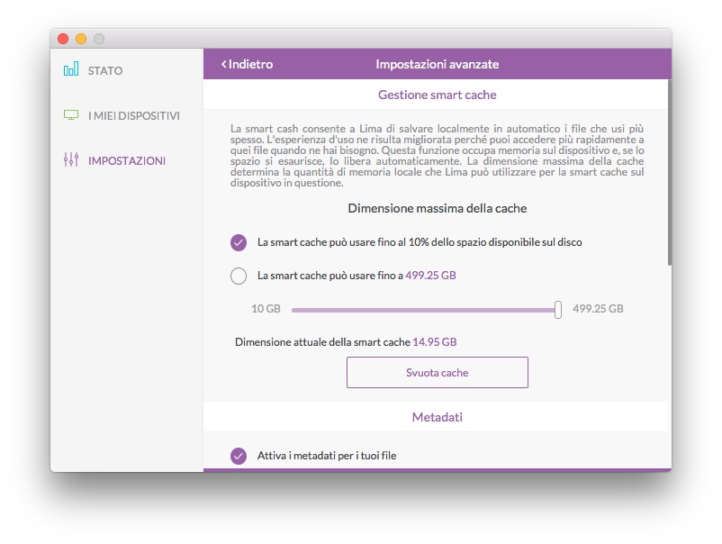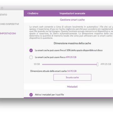 Su questo punto è importante fare chiarezza: Lima Ultra è una soluzione pensata per un singolo utente, non per un gruppo, per cui la sincronizzazione dei dati va attivata solamente sui computer di proprietà o comunque solo quelli che la persona che gestisce Lima utilizza regolarmente, non è uno spazio dove più utenti possono condividere i files come un servizio cloud evoluto.