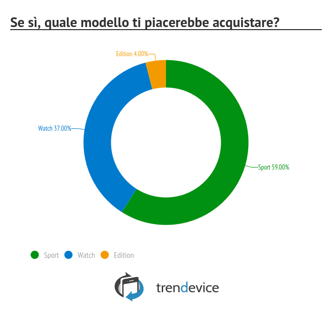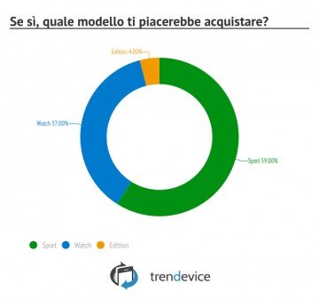 I risultati dell’indagine, su un campione di oltre 1.500 consumatori esperti, confermano l’andamento altalenante del mercato e le perplessità dei consumatori del Bel Paese. Sono ancora pochi, infatti, gli italiani che hanno già acquistato Apple Watch (15%) e la quota non sembra destinata ad aumentare nel mese di agosto (il 35% non ha intenzione di comprarlo e gli indecisi salgono al 50%). I consumatori che hanno previsto a breve di acquistare Apple Watch (15%), preferiscono la versione Sport (59%). Il modello più economico precede la versione Watch (37%) e la più esclusiva Edition (4%), dato confermato anche da chi possiede già Apple Watch (Sport 63%, Watch 33%, Edition 4%).
