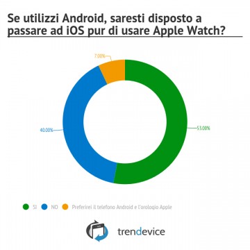 Interessante, invece, il dato relativo agli utenti Android, disposti a passare anche a iOS pur di provare Apple Watch (53%), ma senza rinunciare al telefono Android per un iPhone.
