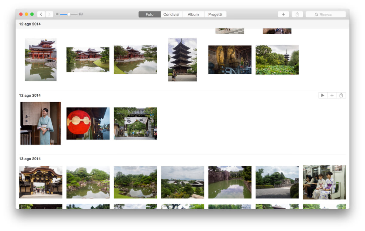 Le luci invece sono una interfaccia più semplice e intuitiva, completamente allineata con quella iOS. E una base dati comune: la semplificazione di avere foto e album uguali da tutte le parti, senza problemi di doppioni e di foto che ci sono solo da una parte e non dall’altra è impagabile. La paragono al primo iPod, che mi ha consentito nel 2001 di portarmi dietro praticamente tutta la mia musica (cosa che accade sempre da allora e che ha completamente cambiato il mio modo di ascoltare). Adesso bisogna aspettare che migliorino un po’ le funzionalità di gestione delle foto, cioè come dicevo prima gli album e altre cose. Sperare che magari tornino alcune delle funzioni strategiche perdute (etichette, tag etc), e ovviamente aver fatto il backup della vecchia libreria di iPhoto prima di entrare in questa nuova avventura, come consigliato da più parti (compresa Macity) prima dell’aggiornamento.