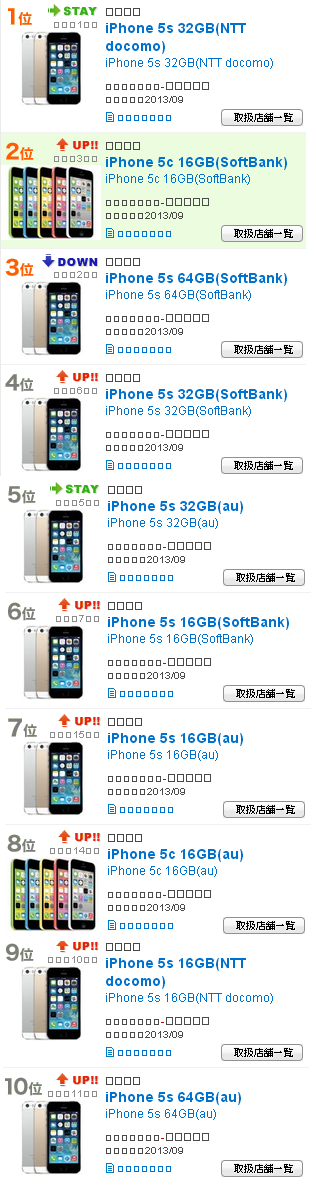 Facendo seguito alla notizia di ieri, riguardante il sorprendente successo di Apple ed iPhone in Giappone, non sorprende (troppo) apprendere che lo smartphone di Apple occupa tutti e dieci i posti della “Top 10” delle vendite di smartphone nella terra del Sol Levante. La classifica in questione si basa sui dati BCN Ranking, che mostra i dispositivi più venduti in Giappone di settimana in settimana. I sette giorni presi in considerazione dalla fonte, sono compresi tra il 29 Ottobre e il 4 Novembre scorso, quando per la prima volta nella storia una marca di smartphone è riuscita a monopolizzare tutti i posti disponibili.