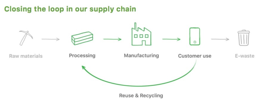 Una filiera tradizionale è un sistema lineare: le materie prime vengono estratte e trasformate in prodotti, per finire nelle discariche al termine della loro vita utile. Poi tutto ricomincia da capo, e nuove materie prime vengono estratte per costruire nuovi prodotti. Obiettivo di Apple è invece costruire “una filiera a ciclo chiuso”, in cui si produce solo a partire da risorse rinnovabili o materiali riciclati. L’azienda ha da tempo già avviato programmi per garantire che i materiali non rinnovabili provengano da fonti responsabili, con standard molto severi e iniziative volte a promuovere miglioramenti sociali e ambientali. Ma la vera sfida è riuscire, in futuro, a non dipendere più in nessun modo dalle miniere.