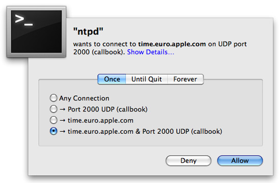 Little Snitch osserva e riferisce tutto questo, informando l’utente ogni volta che un programma in esecuzione tenta di stabiliere una connessione con l’esterno. A questo punto è possibile stabilire di volta in volta se autorizzare o meno la comunicazione (solo per una volta, fino alla chiusura del programma oppure per sempre), in alternativa creare delle regole automatiche per i programmi che vengono utilizzati abitualmente.