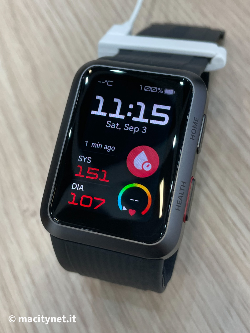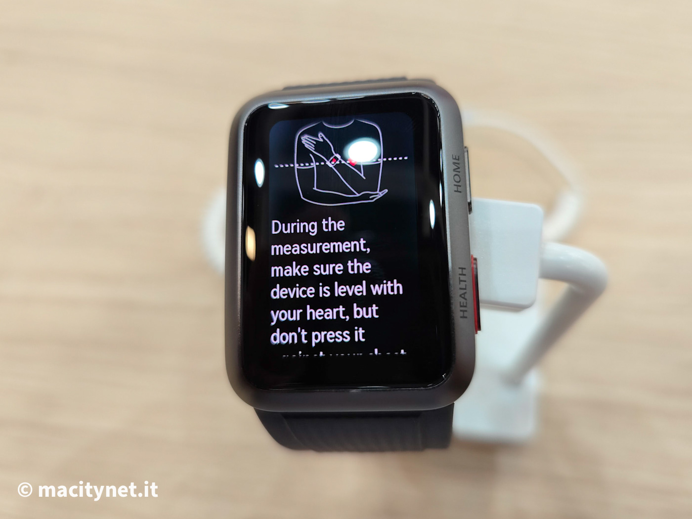 Abbiamo potuto provare HUAWEI WATCH D presso lo stand di Huawei a IFA 2022 con misurazioni dirette e di altri visitatori. E’ sicuramente importante un corretto posizionamento del polso che va portato come per tutti i rilevatori di pressione sanguigna all’altezza del cuore ed è importante che mentre il cinturino si gonfia il soggetto non si muova e pure non parli. Seguendo le indicazioni si avrà un risultato più preciso.