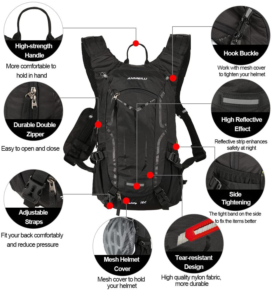 Inoltre è dotato di una maniglia per trattenerlo facilmente come una valigia, una retina con i ganci per trasportare il casco da bici, doppie cerniere, strisce catarifrangenti, una cinghia per bloccare gli spallacci al petto e una seconda per fermare lo zaino intorno alla vita, senza dimenticare i passanti per bloccare efficacemente il tubo della camel bag, che si può riporre in un’apposito scompartimento.