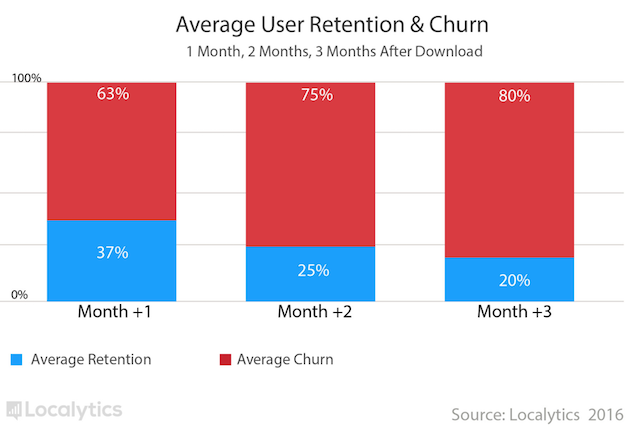 Secondo il responso dell’analisi, il 67 per cento degli utenti abbandona un’app scaricata dopo solo un mese; il numero sale al 75 per cento al secondo mese, mentre raggiunge la significativa cifra del 80 per cento dopo tre mesi, tutte cifre e numeri in crescita rispetto allo scorso anno.