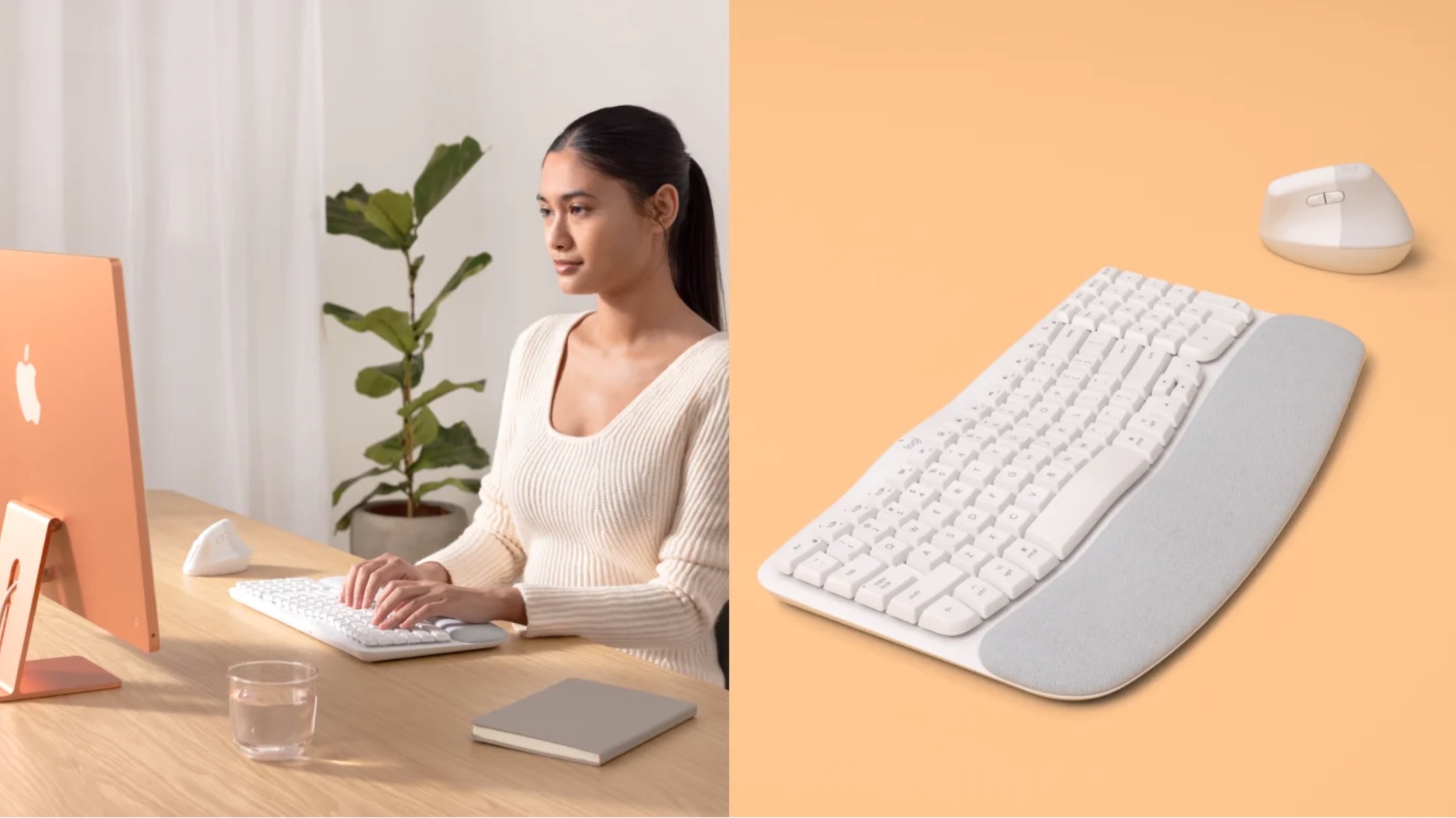 Quest’ultima tastiera (costa 90 CHF) è anche tra le più interessanti del nuovo lotto di lancio. È infatti la prima di stampo ergonomico che l’azienda realizza per Mac: grazie al design ondulato e al poggiapolsi imbottito sviluppato dal Logi Ergo Lab, favorisce una migliore postura e riduce lo sforzo sui polsi, soprattutto per chi lavora al Mac tutto il giorno.