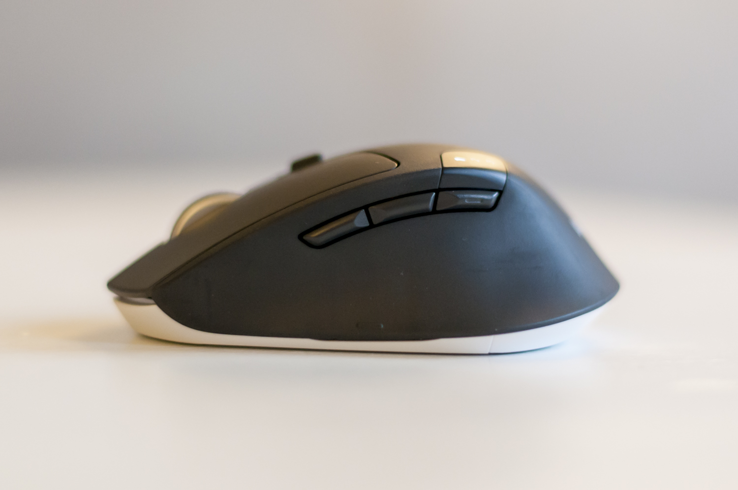 A voler trovare un difetto al mouse potremmo dire che i tre pulsanti laterali sono un po’ troppo… “laterali”, e che cioè rispetto alla posizione del pollice stanno troppo indietro, perlomeno per chi come noi ha le manone. É pur vero che tali pulsanti, specialmente quello dell’easy-switch, non sono d’uso così comune e forse sarebbero d’intralcio se posti più in posizione più ragungibile.