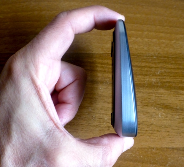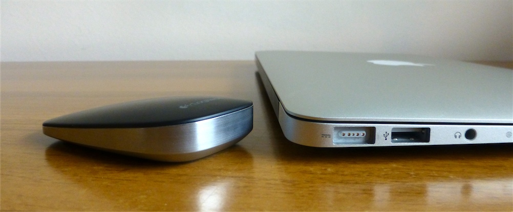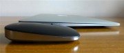 Con i suoi 70 grammi di peso e il design a cuneo basta osservarlo rapidamente per notare subito una somiglianza notevole con il profilo laterale dei MacBook Air di Apple: leggermente più spesso in un lato con un profilo che man mano si riduce, fino a diventare sottilissimo sul lato opposto, fino a raggiungere uno spessore pari a quello di tre monete sovrapposte. Il profilo a cuneo non è l’unica somiglianza con i MacBook Air: il corpo principale è realizzato in alluminio, un altro dettaglio che contribuisce a rendere Logitech Ultrathin Touch Mouse un’abbinata esteticamente riuscita con i portatili ultrasottili della Mela.