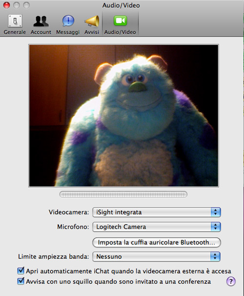 Le differenze nei risultati offerti dalle due webcam sono sostanziali. iSight è in grado di offrire buone immagini e filmati solo in condizioni di luce ottimali: quando questo non accade fotografie e filmati appaiono sgranati, la messa a fuoco lascia a desiderare infine, in penombra o con luce scarsa, filmati e foto risultano tanto scuri da risultare indecifrabili. Le due immagini qui in basso sono collegate ai filmati realizzati con iSight: per riprodurli è sufficiente un clic sulle foto.