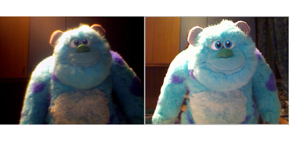 Viceversa con Logitech QuickCam Vision Pro abbiamo a disposizione immagini e filmati molto più nitidi, grazie alla maggiore risoluzione ma anche alla migliore qualità delle lenti. Anche l’autofocus funziona piuttosto bene: quando un soggetto si muove l’immagine appare sfocata per alcuni brevissimi istanti, dopo di che l’autofocus è in grado di tornare a registrare immagini nitide. Infine abbiamo apprezzato in modo particolare la tecnologia RightLight 2: quando iSight e la maggior parte delle webcam mostrano i propri limiti, in condizioni di luce non ottimali, Logitech QuickCam Pro è in grado di riprendere foto e video di qualità elevata. La differenza tra iSight e QuickCam Pro è tanto marcata che sembra impossibile che immagini e foto siano state riprese nello stesso momento o alle stesse condizioni di luce. Qui in basso riportiamo tre immagini collegati ad altrettanti filmati realizzati con la webcam Logitech: per riprodurli è sufficiente un clic sulle immagini.