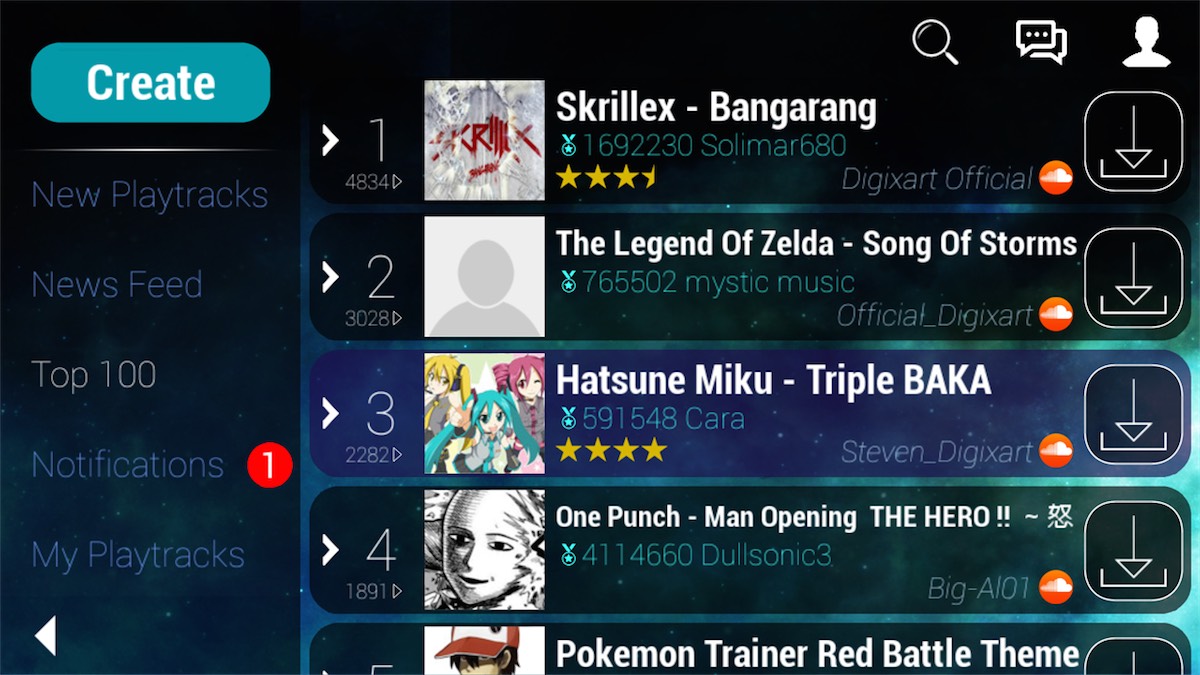 Ma non solo: chi lo desidera può sfruttare l’editor incluso per costruire nuovi percorsi accompagnati dalla propria musica preferita, scegliendo un brano qualsiasi della propria libreria iTunes, senza limiti per quanto riguarda autori e generi. Le creazioni degli utenti possono poi essere condivise con gli altri giocatori per esperienza sempre nuove.