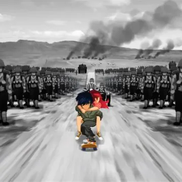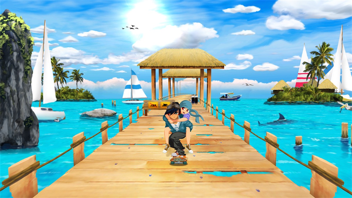 Le dinamiche sono quelle di un runner ma non dobbiamo fermarci alle semplici classificazioni. Mentre controlliamo Kaito e il suo skateboard evitando ostacoli e catturando note e icone a tempo di musica, quindi anche rhythm game, trasportiamo sulle nostre spalle Aya. All’inizio il rapporto tra i due teenager sembra di semplice amicizia: Aya ci avvisa quando arriva un ostacolo da evitare e indica icone e note da prendere al volo, in realtà la situazione è molto più complessa e la musica di accompagnamento gioca un ruolo fondamentale.
