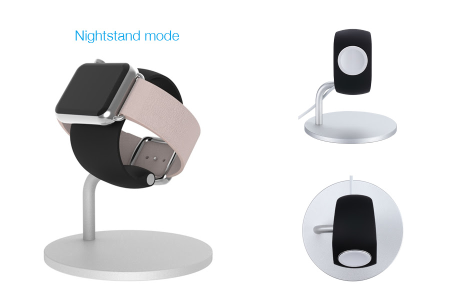 La base, in pesante alluminio, mantiene tutta la struttura stabile sul piano d’appoggio. La particolarità che lo contraddistingue da altri prodotti simili sta nella possibilità di regolare l’angolo del supporto, in questo modo è possibile orientarlo nella giusta posizione sia se si usa il dock sulla scrivania, sia se lo si sposta sul comodino, risultando così compatibile con la nuova modalità notturna che sarà pre-installata nell’orologio a seguito del lancio di watchOS 2.