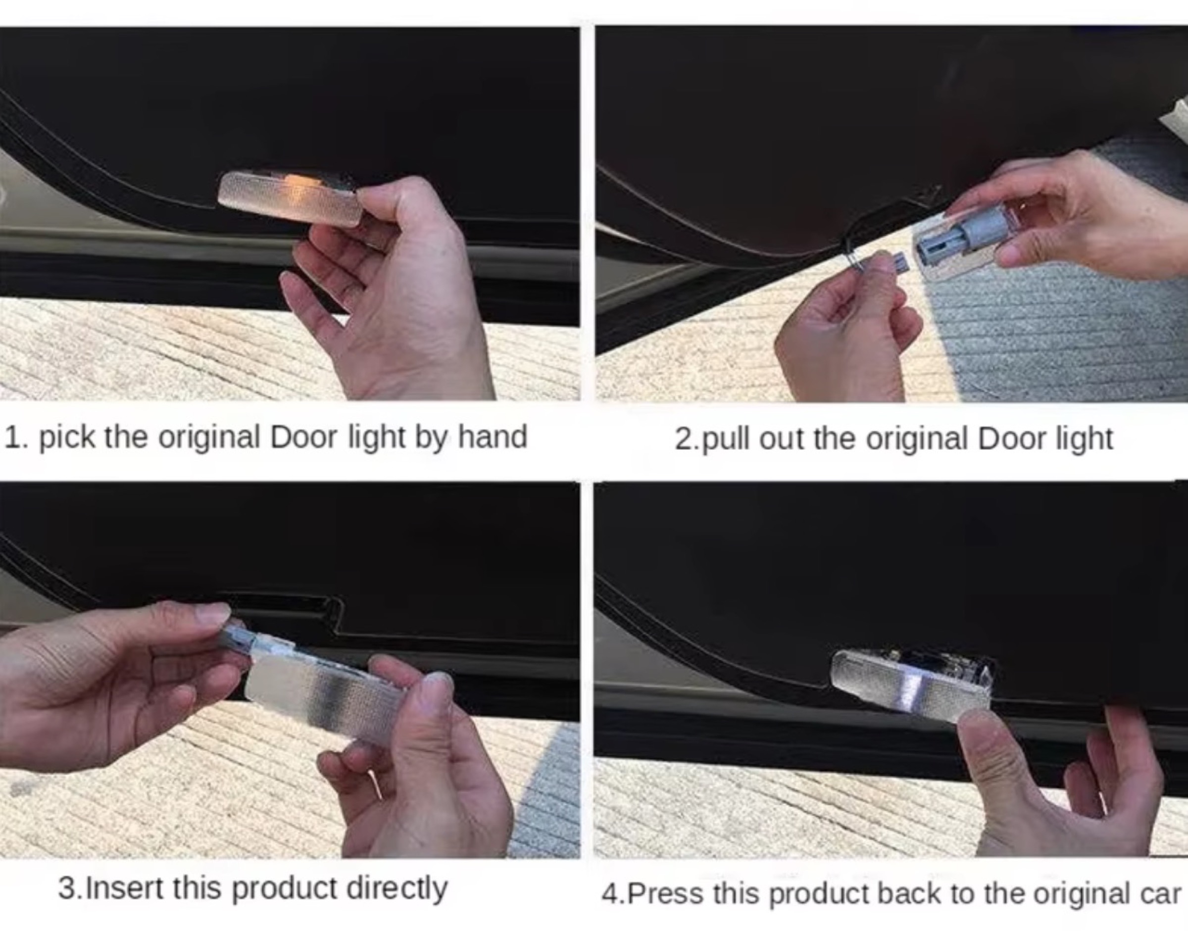 Il montaggio è davvero semplice: non è infatti necessario forare la carrozzeria o fare modifiche complicate in quanto vanno a sostituire direttamente le luci di porta originali, senza bisogno di cablaggi aggiuntivi. Basta rimuovere le vecchie luci e sostituirle con quelle nuove, un’operazione che può essere svolta in pochi minuti da chiunque, anche senza esperienza.