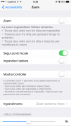 A questo punto tornate indietro, alla scheda Accessibilità, e scendete in basso per accedere alla scheda Abbreviazioni accessibilità ed impostate la voce Zoom. Fatto. A questo punto, al triplo click del tasto Home potrete ridurre la luminosità oltre il minimo concesso. Non ci credete? provate ad aprire il Centro di Controllo, riducete la luminosità al minimo, quindi eseguite un triplo tap per vedere diminuire ulteriormente la luminosità. Per tornare allo stato “normale”, di nuovo un triplo tap per disattivare la funzione.