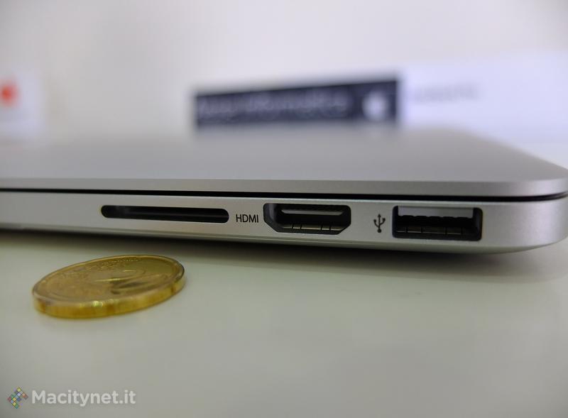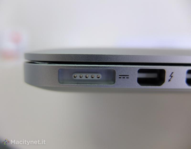 Sull’altro l’altro lato: Magsafe 2 per l’alimentazione, doppia Thunderbolt, USB 3 e audio