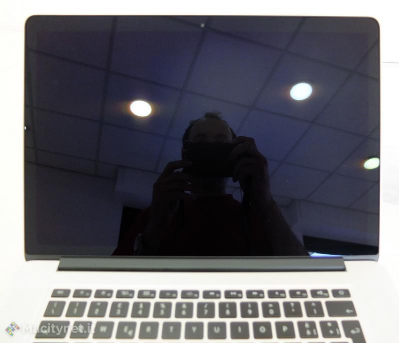 Lo schermo non e’ matte ed Apple promette una riduzione dei riflessi del 75 ma ovviamente senza display acceso l’effetto specchio è garantito.