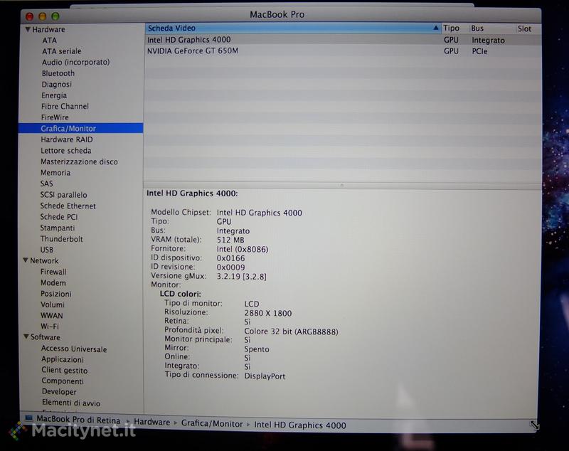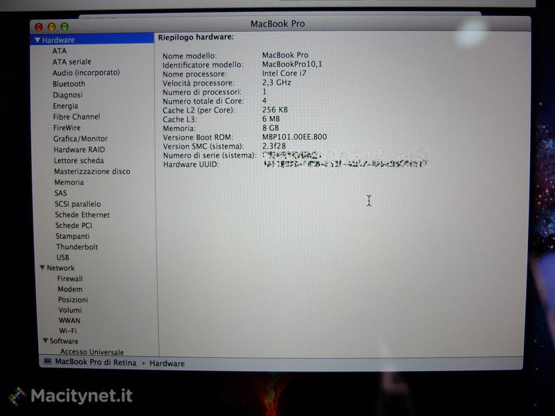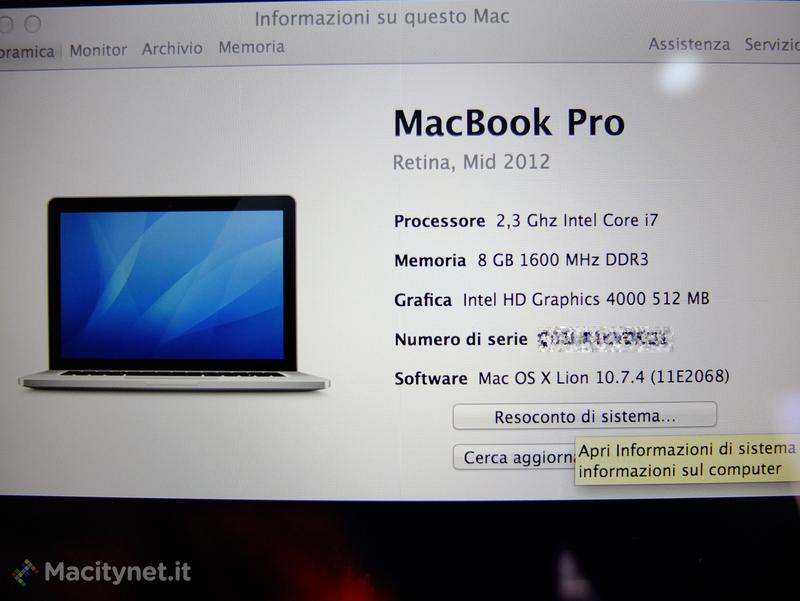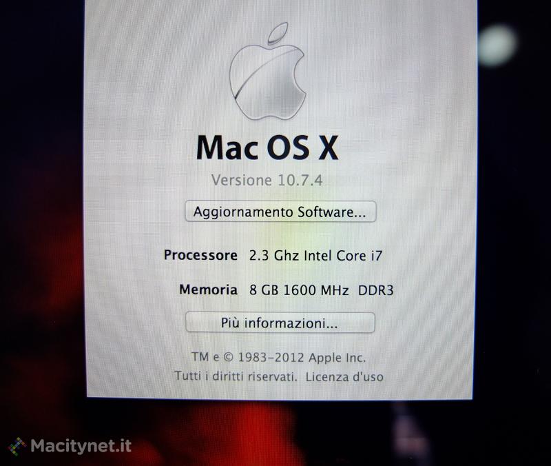 Ed ecco le informazioni sulla nostra macchina: è la versione base con i7 da 2.3 Ghz e 8 GB di Ram