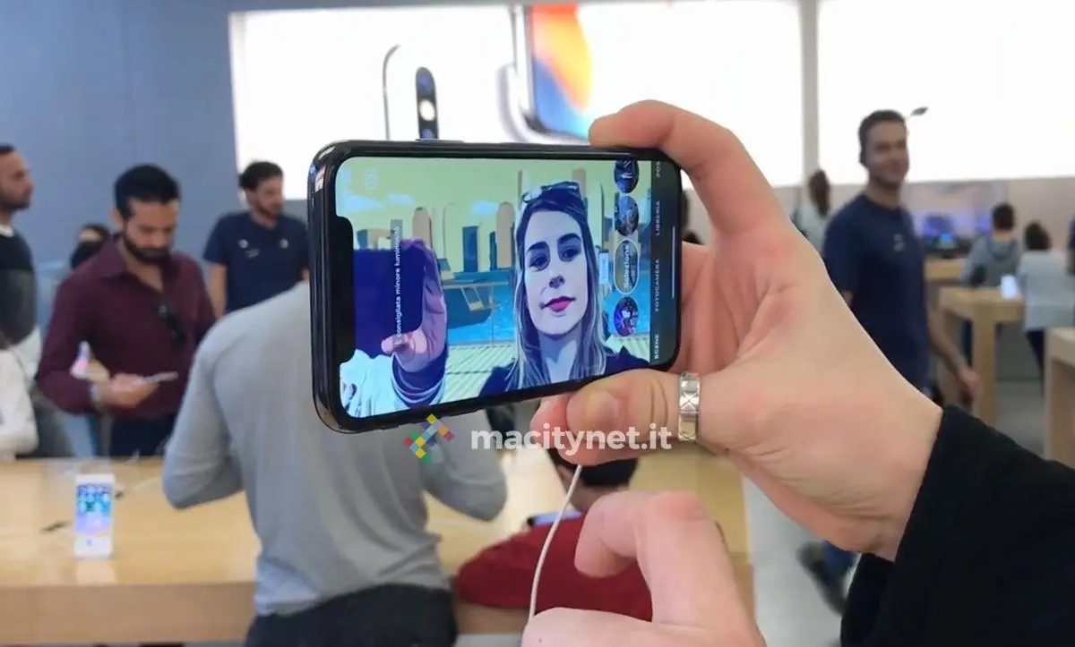 Anche questo Apple Store è decisamente affollato di persone che non vedono l’ora di comprare iPhone X o semplicemente per poterlo vedere, toccare con mano e provarlo personalmente. Questo non ha impedito al nostro intrepido inviato e aiutante modella di riprendere il video iPhone X del primo approccio con l’ambito smartphone. Nel video iPhone X sono mostrati i primi esperimenti con l’interfaccia, funzioni di serie, qualche filtro ed effetto per la fotocamera dei selfie.
