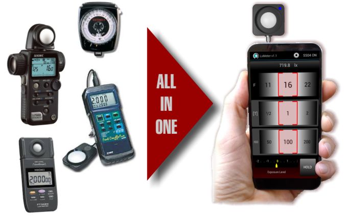 Grazie all’applicazione, l’accessorio consente di trasformare il vostro telefonino in un dispositivo multifunzionale: non solo un esposimetro ma anche un luxometro, un misuratore flash ed un misuratore spot.