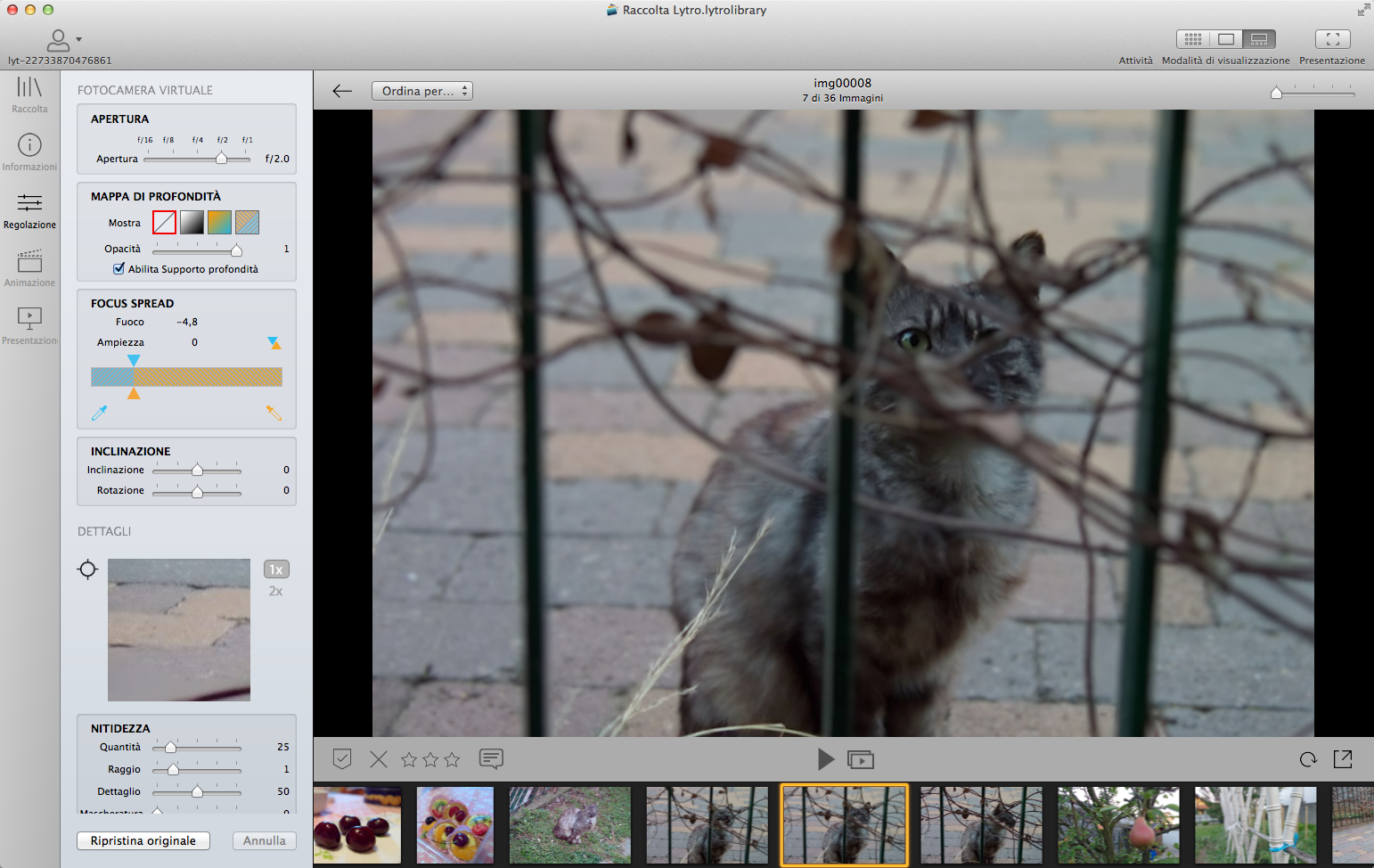 L’elaborazione svela una serie di funzionalità di livello basico, che permettono di ritoccare aspetti tradizionali dell’immagine, come il contrasto, l’esposizione, i dettagli, i colori e la luminosità, ma anche opzioni nuove legate alla tecnologia Lytro, come la possibilità di scegliere a posteriori le impostazioni dell’apertura e l’ampiezza dei due piani di rifocalizzazione, sbloccando libertà mai viste prima.