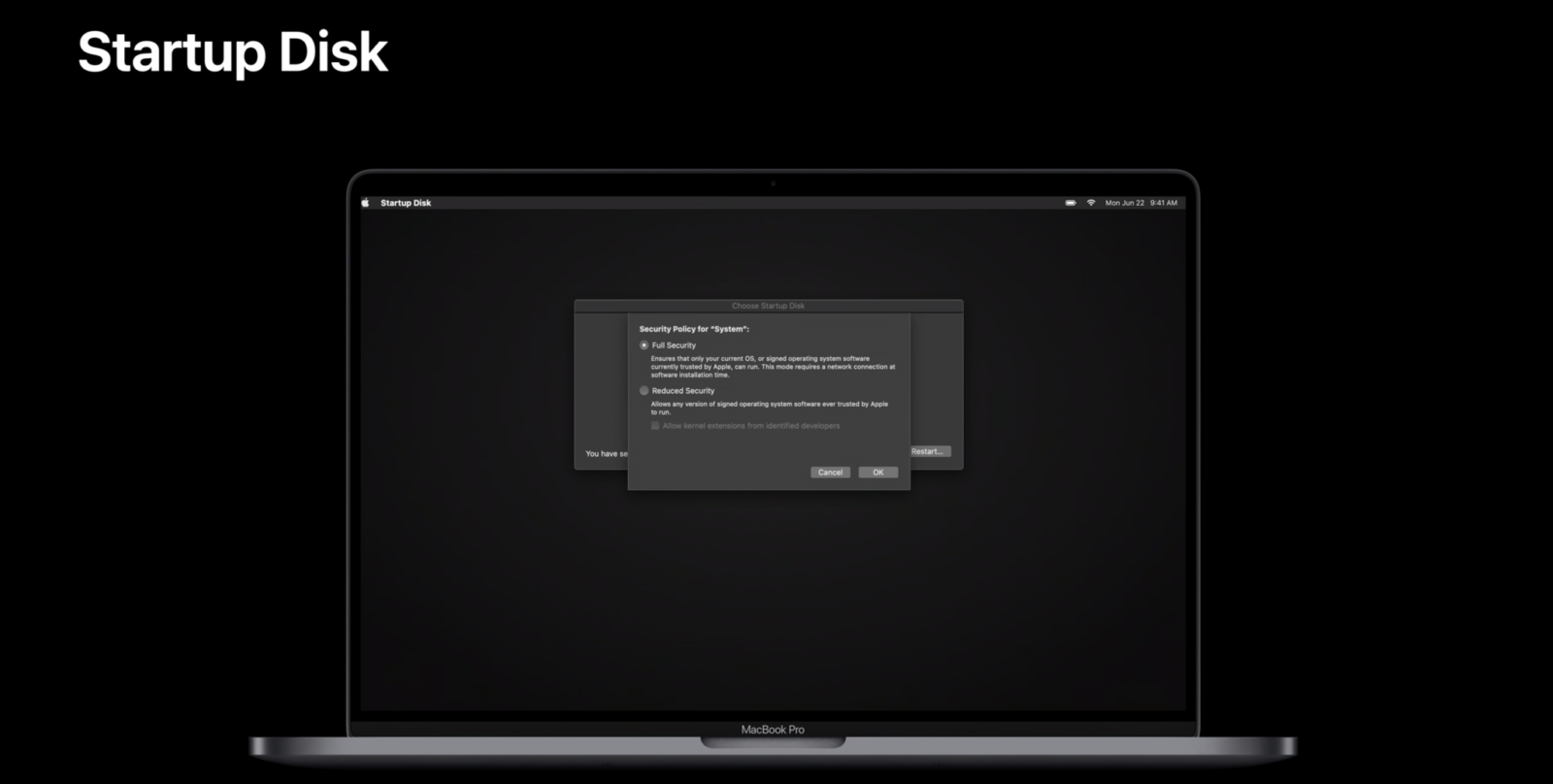 Jason Snell del sito Six Colors riferisce di nuove opzioni sul versante sicurezza. “Questi Mac offriranno un approccio di maggiore granularità per quanto riguarda la sicurezza all’avvio”. “Ogni volume di avvio può essere impostato con una diversa modalità di sicurezza, sia con la modalità sicurezza completa (quella di default) sia con una modalità di sicurezza limitata”. “Questo significa che sarà possibile avvisre da dischi esterni senza abbassare la sicurezza”. “Nella modalità di sicurezza ridotta sarà possibile avviare qualsiasi versione di macOS supportata, anche quando Apple non firma più il sistema, e se app o accessori fanno affidamento a estensioni del kernel di terze parti per attivare determinate funzionalità, sarà necessario usare questa modalità”.