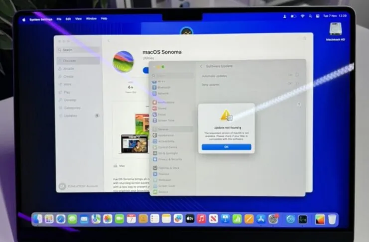 Quando si prova a lanciare il classico software update, dicono youtuber e utenti di X, il processo restituisce un messaggio che fa sapere che la macchina è aggiornata all’ultima versione. Il che non è ovviamente vero visto che a fine settembre Apple ha messo a disposizione Sonoma. Anche ricorrendo ad App Store la risposta è la stessa.