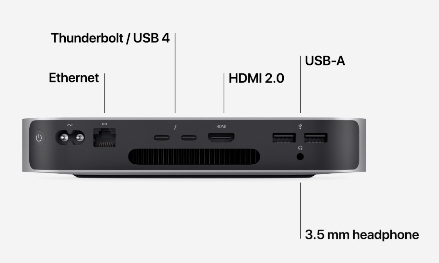 Sul retro godrà di una porta Thunderbolt che è anche USB 4, una HDMI 2.0, due porte USB A e il jack per cuffie 3,5 mm. Non mancherà la possibilità di collegare anche il display pro a 6K. A livello di CPU sarà 3 volte più veloce del predecessore, a livello grafico ben 6 volte superiore, con una capacità di elaborazione immagini davvero sorprendente.