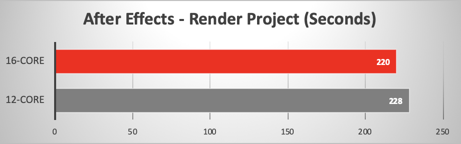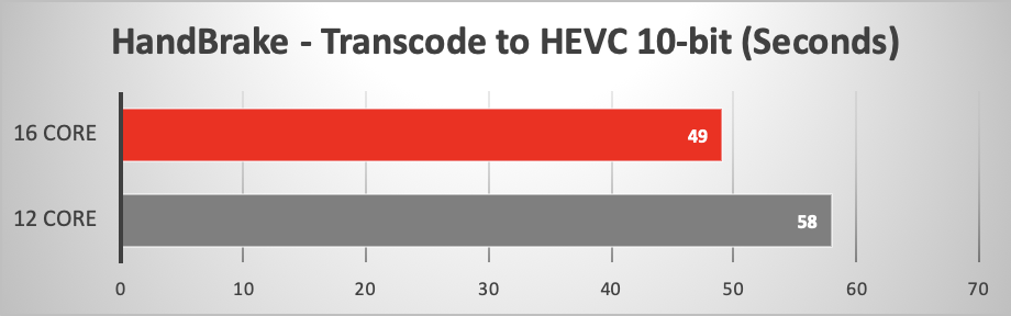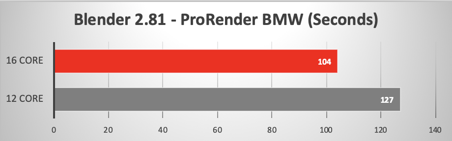 Tra il Mac Pro con processore Intel Xeon W 12‑core a 3,3GHz (Turbo Boost fino a 4,4GHz) e quella con processore Intel Xeon W 16‑core a 3,2GHz (Turbo Boost fino a 4,4GHz) c’è una differenza di 1200,00 euro a parità di configurazione (RAM, SSD, grafica, ecc.). Nei test che usano in modo intensivo la CPU la variante 16-core evidenzia un incremento di velocità tra il 3% e il 26% (con una media del 15%).