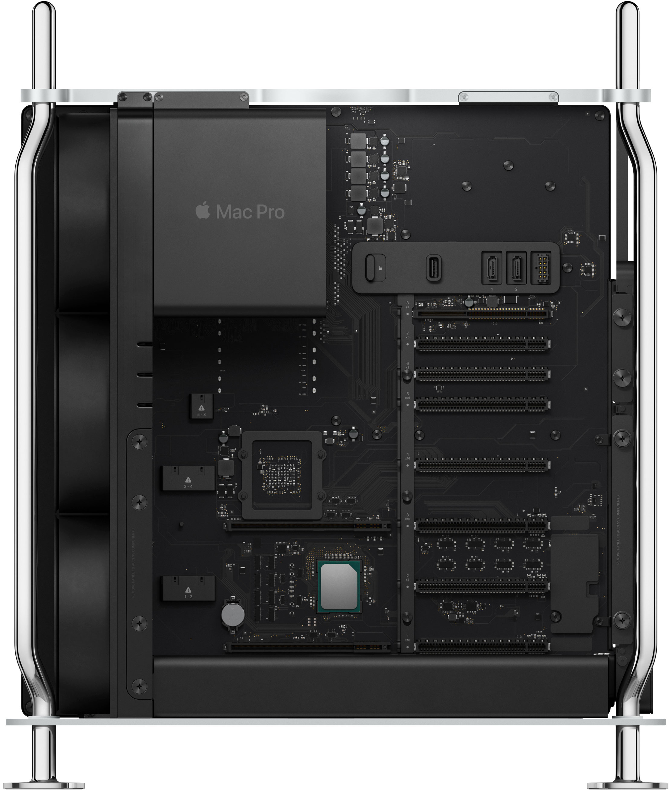 La struttura è in acciaio inossidabile; l’accesso all’interno è semplice e Apple ha promesso anche l’arrivo di una versione per l’installazione in rack.
