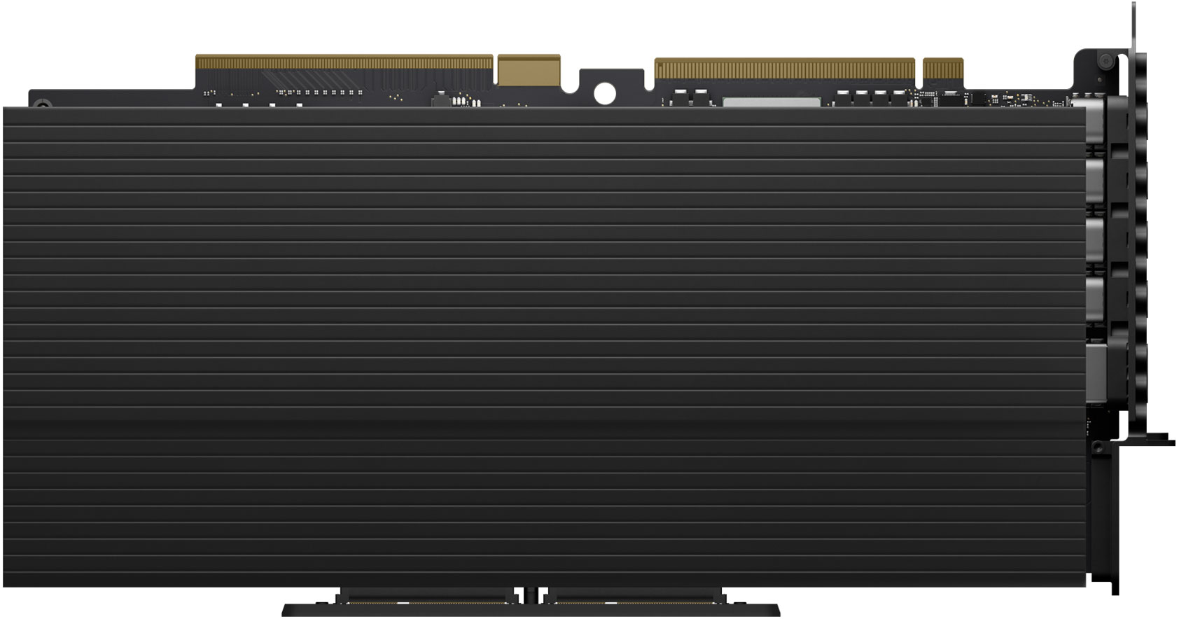 L’AMD Radeon Pro Vega II offre 64 unità di calcolo, 4096 stream processor, 32GB di memoria HBM2 con larghezza di banda fino a 1TB/s, supporta fino a 14,1 teraflop in singola precisione e 28,2 teraflop in mezza precisione. Apple spiega che la connessione Infinity Fabric Link permette a due GPu Vega II di offrire connessioni fino a 84GB/s. Sulla scheda sono presenti quattro porte Thunderbolt 3 e una porta HDMI. Due connessioni DisplayPort sono dirottate al sistema a supporto delle porte Thunderbolt 3. Questa supporta fino a sei display 4K, tre display 5K o due Apple Pro Display XDR con risoluzione 6K.