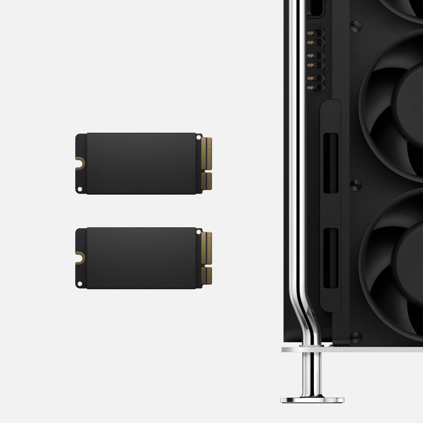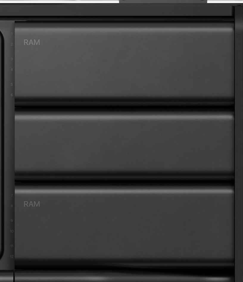 I processori sfruttati da Apple sono di classe workstation ed è possibile espandere la memoria a livelli mai visti prima. Per i professionisti che lavorano a progetti di grandi dimensioni, ricercatori che hanno d esempio la necessità di effettuare complessi calcoli scientifici analizzano infinite quantità di dati o usano più applicazioni professionali alla volta, Mac Pro offre un’enorme capacità di memoria per adattarsi alle loro esigenze in continua crescita. Con un’architettura a sei canali e 12 slot DIMM fisici, il nuovo Mac Pro offre 1,5TB di memoria: la più grande mai vista su un Mac.