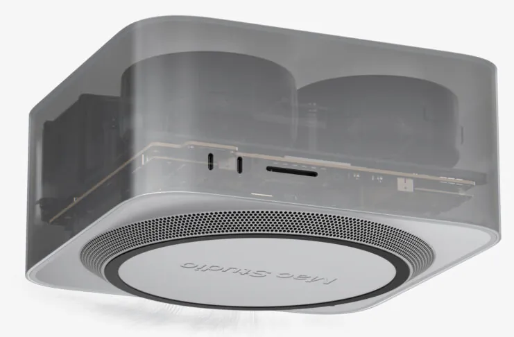 Nonostante sia in grado di erogare potenza di calcolo e prestazioni superiori anche rispetto al più grande e costoso Mac Pro, Mac Studio risulta essere una macchina estreamente piccola, compatta e anche leggera: per questa ragione necessita di un lucchetto di sicurezza quando viene utilizzato in luoghi aperti al pubblico o comunque molto frequentati.