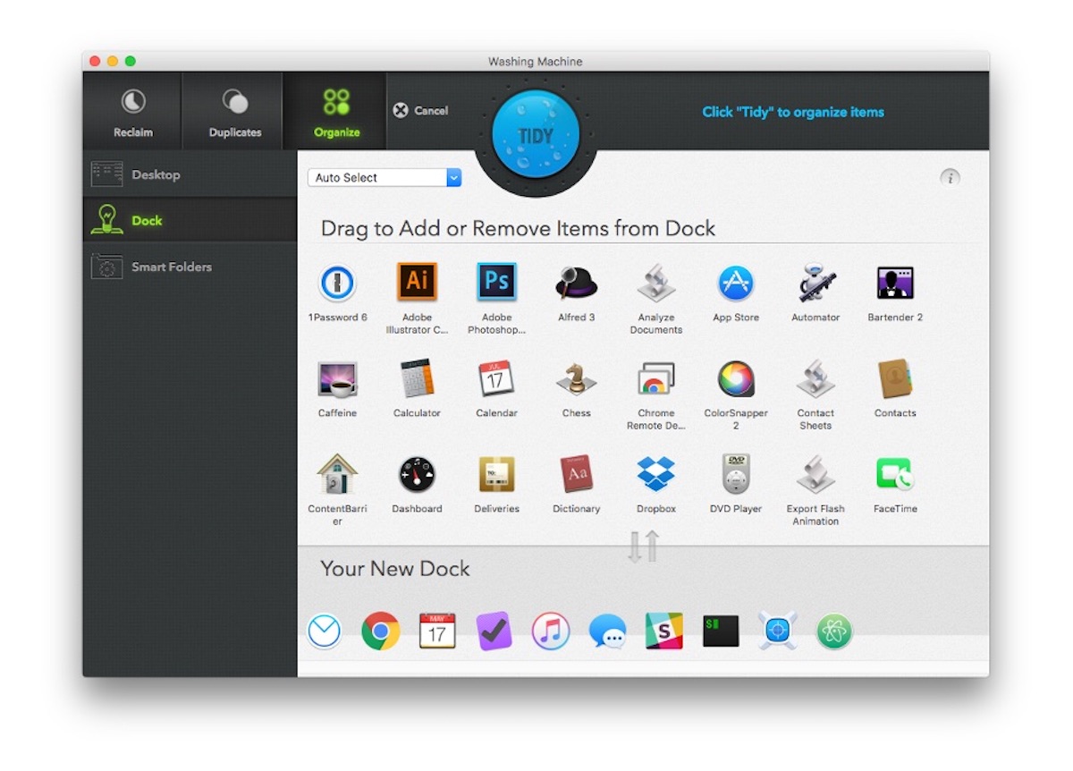 Per far fronte al caos di una gestione poco oculata dei file, Mac Washing Machine X9 può organizzare automaticamente la giungla di file che ingombrano il tuo desktop archiviando ogni file in una cartella appropriata.