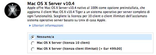 In pratica, al contrario di quanto riportato da alcuni siti statunitensi e britannici, chi ordina il Mac Pro e fa, contestualmente, l’ordine di un sistema operativo server continuerà pagare un extra per i canonici 499 euro extra (per la versione a 10 client) o 999 euro (per la versione client illimitati).