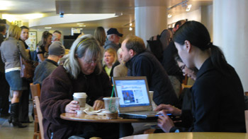 Alicia Kingston la incontriamo seduta poco più in là sempre nello stesso StarBucks: al momento lavora part time al Museo di Arte Moderna qui a San Francisco e sfoggia un cappellino di sostegno a a Barack Obama: anche lei ha un Sony, più leggero di quello di Fusako, è il modello di confronto mostrato da Steve Jobs durante il keynote.